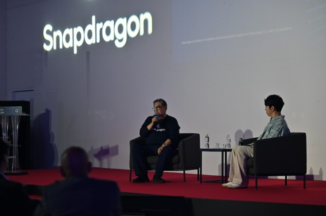 이미지 확대보기연사로는 권오형 퀄컴 본사 수석 부사장 겸 아태지역 총괄 사장과 과학 유튜버 '궤도'가 참여해 소비자 경험의 중심에 있는 퀄컴의 기술과 퀄컴이 비용, 전력 소모, 지연 시간의 강점으로 어떻게 온디바이스 AI를 지원하고 있는지에 대해 대담을 나눴다.