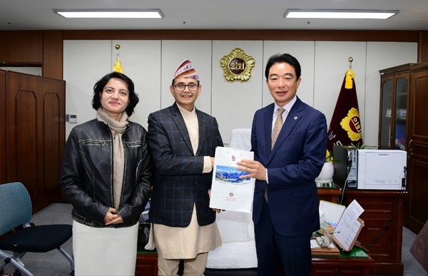 이미지 확대보기한국네팔국제교류협회(이사장 윤종선, 이하 협회)는 ‘쁘스뻐 라즈 버떠라이’(Pushpa Raj Bhattarai) 네팔 대사대리와 지난 20일 경남도의회와 진주시의회를 방문해 경남과 농업 분야 불교문화 국제교류 협력 방안에 대해 논의했다고 26일 밝혔다.