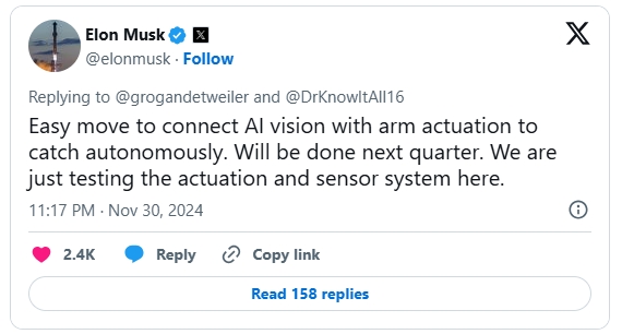 그는 테슬라 옵티머스 개발팀이 지난달 28일 X를 통해 옵티머스가 테니스공을 잡는 모습을 담은 영상을 올린 배경에 대해 설명하며 이같이 밝혔다.