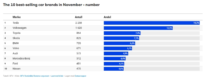 일렉트렉은 “결과적으로 노르웨이에서 전기차로 분류될 수 있는 신차의 비중은 95%에 거의 달했다”고 강조했다.