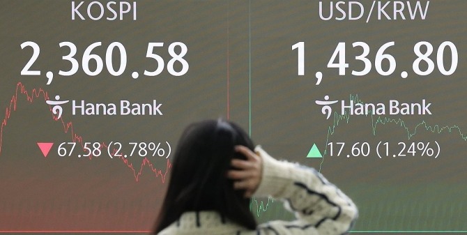 이날 코스피는 전거래일보다 2.78%(67.58포인트) 하락한 2360.58에 거래를 마쳤다.