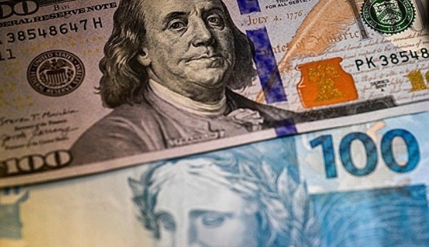2024년 12월 17일 브라질 리우데자네이루에서 미국 달러(위)와 브라질 헤알(아래) 지폐가 보인다. 사진=AFP/연합뉴스
