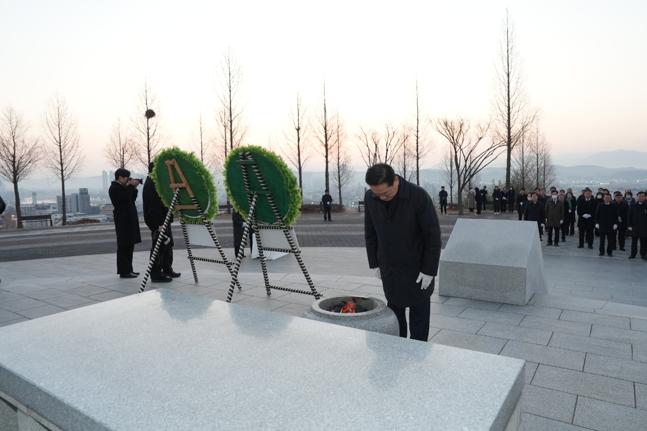 이미지 확대보기최기문 영천시장과 직원 140여 명은 2일 시청 대회의실에서 2025년 시무식을 갖고 힘찬 출발을 다짐했다.