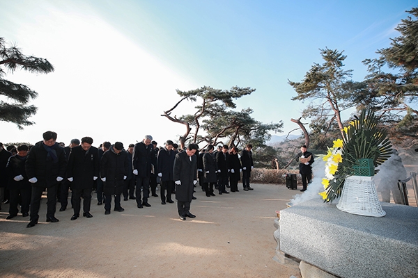 정약용 묘역 참배에서는 기획조정실장이 공직자를 대표해 ‘우리의 결의’를 낭독하며 공직자로서의 책임과 역할을 다짐했다. 이후 시청 다산홀에서 열린 시무식은 정약용 선생의 청렴 정신을 조명하는 홍보 영상 상영으로 시작됐다.