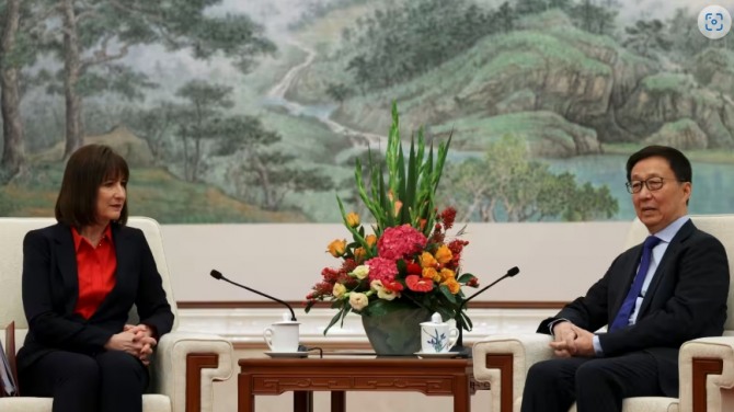 리브스 장관은 이번 방문에서 한정 부주석, 허리펑 부총리 등 중국 고위 인사들과 잇달아 회담하며 금융서비스, 무역 관계, 기후변화 등 다양한 분야의 협력 방안을 논의했다. 2019년 이후 중단됐던 영·중 고위급 경제금융 회담도 재개를 앞두고 있다.