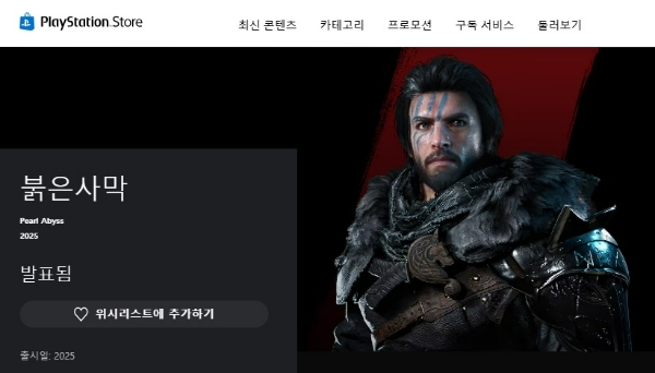 플레이스테이션 스토어 '붉은사막' 페이지를 캡처한 것. 사진=소니 인터랙티브 엔터테인먼트(소니IE)