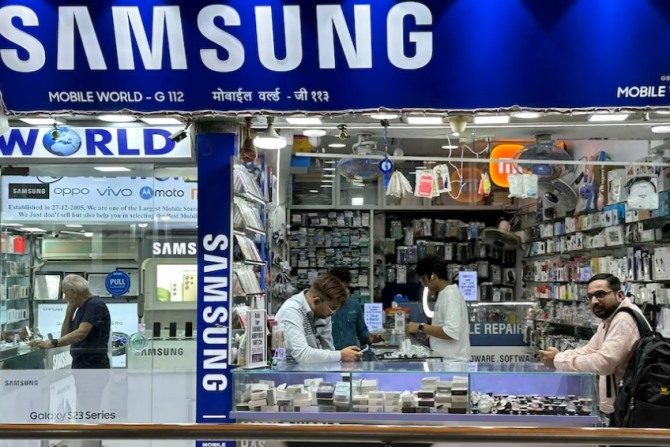 인도 뭄바이에서 지난해 3월 삼성 휴대폰과 액세서리를 판매하는 매장 안에서 소비자들이 쇼핑하고 있다.  사진=로이터이미지 확대보기