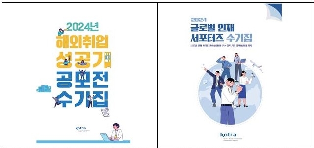 이미지 확대보기대한무역투자진흥공사(코트라)는 산업통상자원부, 고용노동부와 ‘2024년 해외취업 성공기 공모전 수기집’과 ‘2024 글로벌 인재 서포터즈 수기집’을 발간했다고 4일 밝혔다.