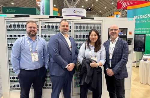 미국 뉴올리언스서 열린 ASHP 2024 전시회에서 한미약품과 McK 관계자들이 기념 촬영을 하고 있다. 왼쪽부터 맥케슨 오토메이션 영업 및 사업개발 부사장 케빈 클루티에, 맥케슨 캐나다 기술 솔루션 부사장 이브 블랑셰트, 한미약품 해외영업팀 이지현 그룹장, 맥케슨 캐나다 오토메이션 부사장 겸 총괄 매니저 스티브 데니슨. 사진=한미약품