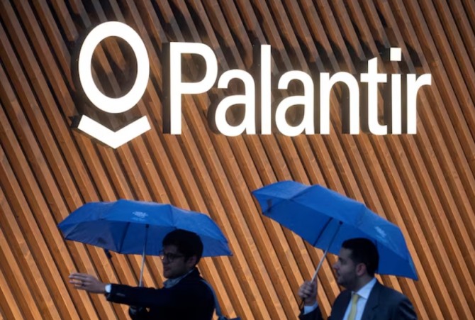 2022년 5월 22일 스위스 다보스에서 미국 소프트웨어 회사 팔란티어 테크놀로지스(Palantir Technologies)의 로고가 보인다. 사진=로이터
