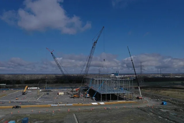 포스코퓨처엠과 미국 제너럴모터스(GM)가 합작한 얼티엄캠이 캐나다 베캉쿠아에 건설하고 있는 연산 3만t의 양극재 공장 건설 모습. 사진=포스코퓨처엠