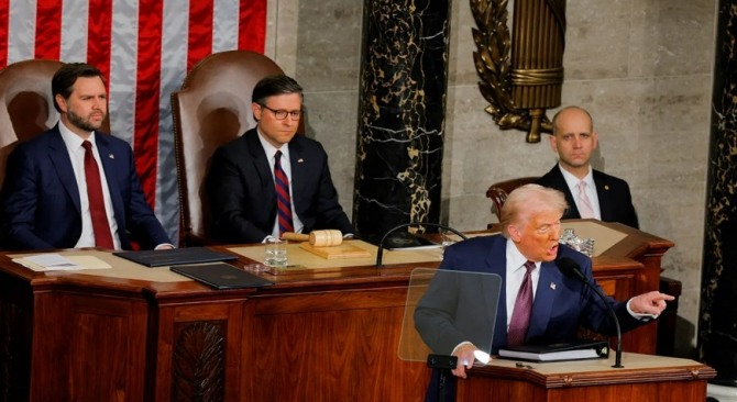 도널드 트럼프 미국 대통령이 4일(현지시각) 워싱턴 D.C.의 미 의회 의사당에서 열린 상·하원 합동회의에 참석, 연설하고 있다. 사진=로이터