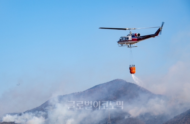 이미지 확대보기27일 영덕군에 따르면 헬기 13대, 소방차 14대, 고성능 살수차 6대, 특장차 11대를 투입하고 공무원 300여 명, 소방·경찰·사회단체 274명 등을 동원해 총력 진화에 나서고 있다.