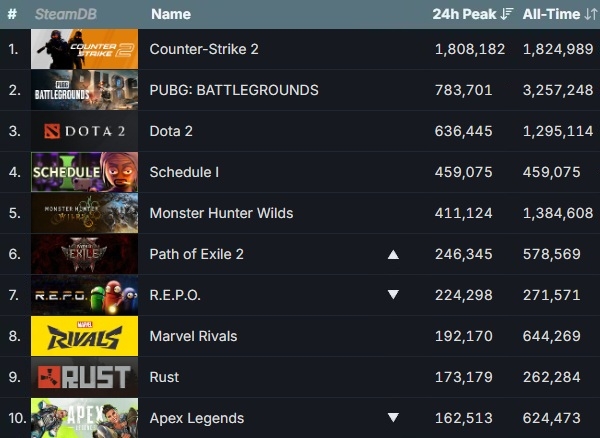 스팀 데이터베이스에 따르면 이번 업데이트 후 PoE 2에는 약 24만 명의 동시 접속자가 몰렸다. 이로서 올 2월 초 톱10 밖으로 밀려난 이후 2개월 만에 동시 접속자 수 순위 톱10에 복귀했다.