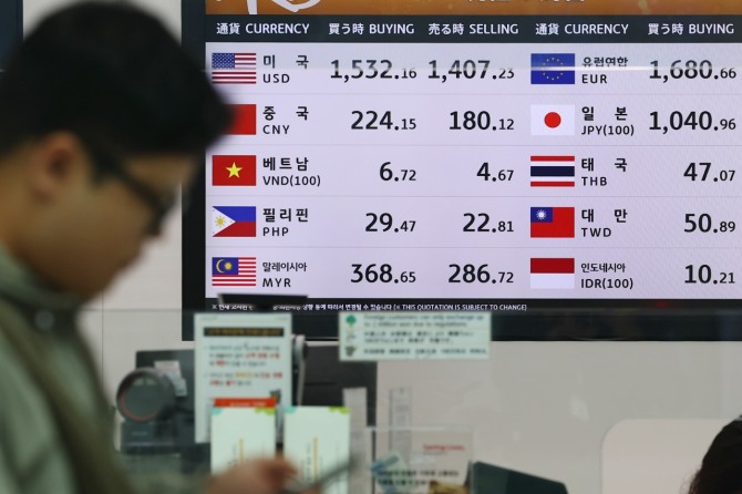 원·유로 환율 역시 1600원대로 껑충 뛰었다. 2월 중순 때만 해도 1500원을 밑돌던 원·유로 환율은 지난 3일 1600원대로 올라선 뒤 이날 오후 3시 40분 1617.47원에 거래되고 있다.