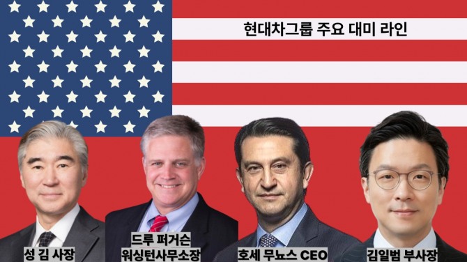 이미지 확대보기20일 업계에 따르면 현대차그룹은 최근 미국 정관계 네트워크에 정통한 인물들을 그룹 내 핵심 보직에 배치해 대응 수위를 끌어올리고 있다. 정·재계 인맥을 활용해 정책 흐름을 조기에 포착하고 주요 사안에 대해 발 빠른 대응이 가능한 구조를 만든 것이다.