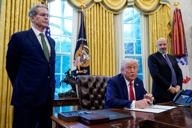 이미지 확대보기트럼프 대통령과 일론 머스크 테슬라 최고경영자(CEO), 하워드 러트닉 상무부 장관, 스콧 베선트 재무부 장관 등 억만장자들이 주도하는 경제 정책이 서민의 삶과 괴리돼 있다고 20일(이하 현지시각) 뉴욕타임스(NYT)는 보도했다.