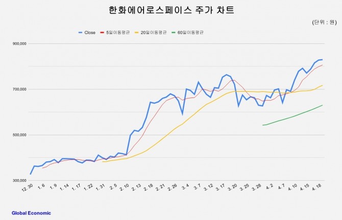한화에어로스페이스 올해(2024년 12월 30일~2025년 4월21일) 주가 동향. 그래프=김성용 기자이미지 확대보기