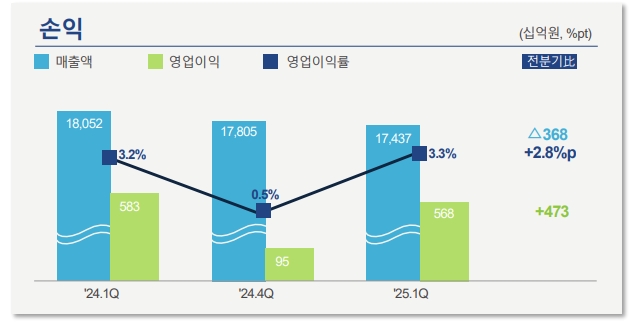 매출 17조4370억 원으로 전년보다 3.4% 감소