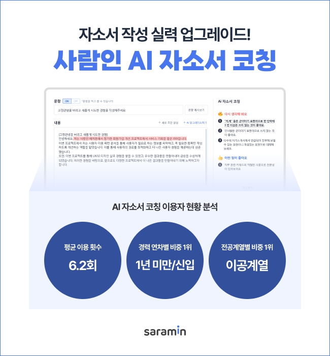 커리어 플랫폼 사람인이 '사람인 AI 자소서 코칭' 서비스 이용 현황을 분석해 28일 발표했다. 이미지=사람인