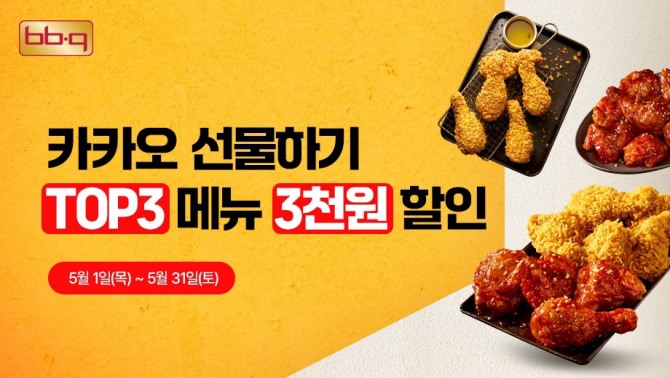 이미지 확대보기13일 제너시스BBQ 그룹에 따르면 5월 한달간 ‘카카오 선물하기’ 코너의 인기 메뉴 기프티콘 3종에 대해 3000원 할인 행사를 진행한다.