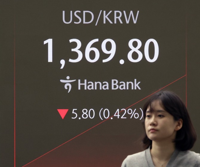 26일 서울 외환시장에서 원·달러 환율은 전거래일 주간 종가(23일 오후 3시 30분 기준, 1375.6원) 대비 6.6원 내린 1369.0원으로 개장했다. 이는 지난해 10월 17일(1364.5원) 이후 약 7개월 만에 낮은 최저 개장 환율이다.
