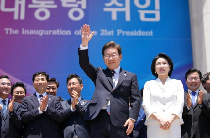 이재명 대통령과 부인 김혜경 여사가 6월 4일 서울 국회에서 취임식을 마치고 떠나고 있다. 사진=로이터이미지 확대보기