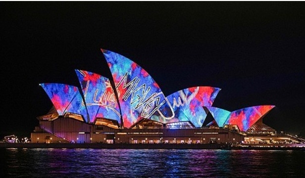 5월23일 호주 시드니에서 열린 연례 비비드 시드니(Vivid Sydney) 축제에서 시드니 오페라 하우스의 돛이 조명으로 밝혀져 있다. 사진=AFP/연합뉴스
