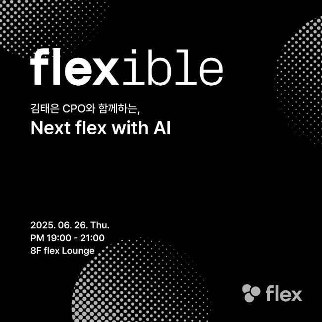 이미지 확대보기플렉스는 오는 26일 19시 분당 서현동에 있는 플렉스 라운지에서 'flexible: Next flex with AI'라는 테크 세션을 연다고 23일 밝혔다.