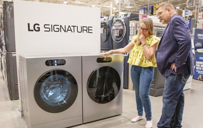 이미지 확대보기24일 업계에 따르면 LG전자는 최근 미국의 대표적인 종합 가전 유통 업체 ‘로우스’에 ‘LG 시그니처’ 29인치 세탁기와 건조기 제품 공급을 시작했다. 공급된 제품은 미국 내 가정용 드럼 세탁기와 건조기 중 최대 용량을 갖춘 제품이다.