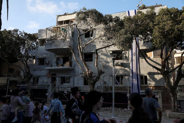 2025년 6월 22일 이스라엘 하이파에서 이란-이스라엘 분쟁 중, 이란-이스라엘 분쟁 중 이란의 이스라엘 공습 이후 충돌 현장에 사람들이 모여 있다. 사진=로이터