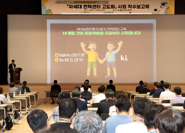 KT가 NH농협은행과 '차세대 컨택센터 구축' 사업 계약을 체결하고, 총 400억 원 규모의 AI 기반 컨택센터 구축을 본격 추진한다고 1일 밝혔다. 사진은 NH농협은행 '차세대 컨택센터 구축' 사업 착수보고회 모습이다. 사진=KT