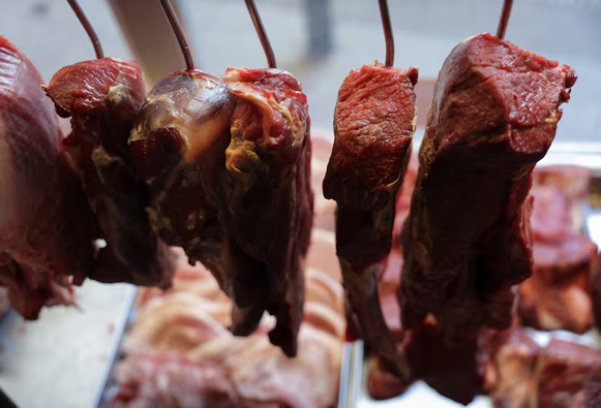 지난해 11월 26일(현지시각) 브라질 리우데자네이루의 한 정육점에 고기들이 걸려 있다. 사진=로이터