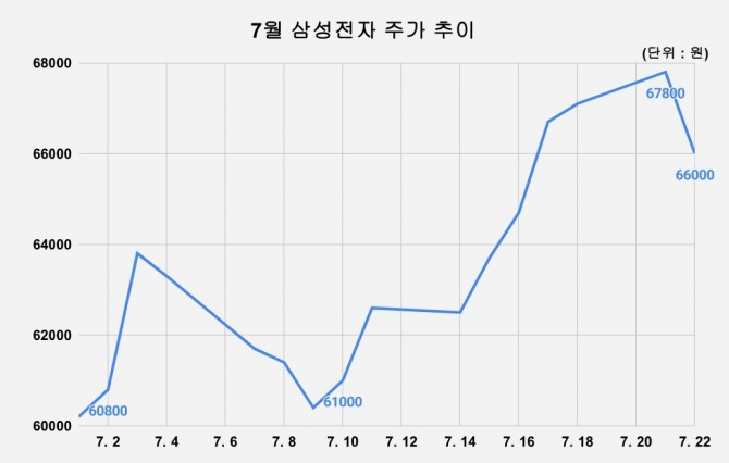 여기에 이재용 삼성전자 회장의 사법 리스크 해소 흐름도 더해지며, 주가에 우호적인 환경이 조성되고 있다. 지난 21일 삼성전자는 전날보다 1.04%(700원) 오른 6만7800원에 마감하며 5거래일 연속 상승세를 이어가며 연고점을 다시 경신했다. 이로써 종가 기준 연고점을 4거래일 연속 갈아치우며 '7만전자' 고지를 눈앞에 두는 듯한 흐름을 보였다.