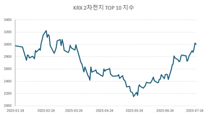 27일 한국거래소에 따르면, KRX 2차전지 톱10 지수는 이달 들어 15.8% 상승해 거래소 테마지수 중 가장 높은 수익률을 기록했다. 같은 기간 코스피 상승률(4.0%)의 약 4배에 달하는 수치다.