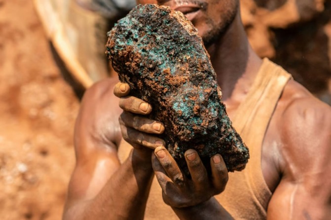 콩고민주공화국 콜웨지 인근 광산에서 한 광부가 코발트 원석을 들고 있다. 미국 지질조사국에 따르면 2024년 이 나라는 전 세계 코발트의 76%를 생산했다. 사진=AFP/연합뉴스