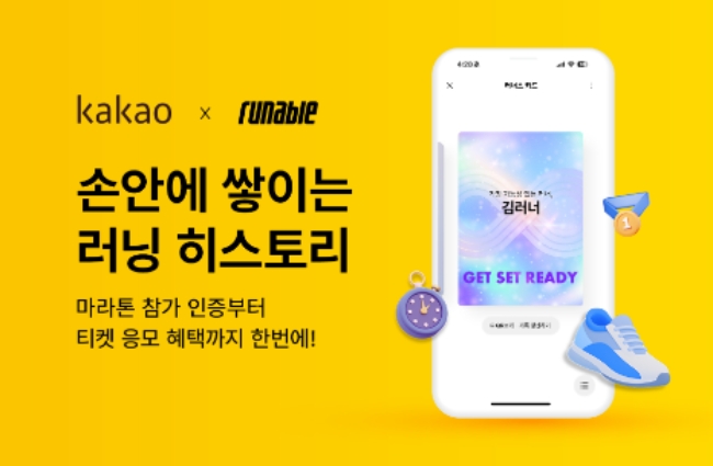 카카오가 러닝·마라톤 참가 이력을 인증하는 신규 톡디지털카드 '러너스 카드'를 31일 선보였다. 소셜 러닝 플랫폼인 러너블과 협업해 대회 선등록·기록 기반 커뮤니티 등 러닝 특화 서비스를 확대할 방침이다.