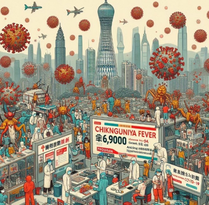 중국 광둥성 포산에서 시작된 치쿤구니야 열 환자가 불과 한 달도 안 된 사이에 마카오와 베이징까지 감염이 퍼지며 코로나19 때 긴 검사 줄에 쌓였던 불안감이 다시 커지고 있다. 이미지=마이크로소프트 디자이너이미지 확대보기