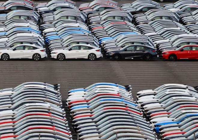 지난달 23일(현지시각) 일본 요코하마 인근의 한 산업항에서 혼다 차량들이 차량 보관 야드에 줄지어 서 있다. 사진=로이터