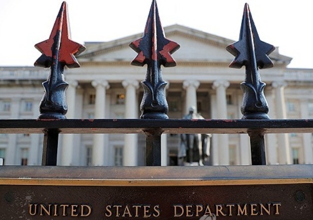 2018년 8월 6일 미국 워싱턴 D.C.에 있는 미국 재무부 건물 표지판이 보인다. 사진=로이터/연합뉴스