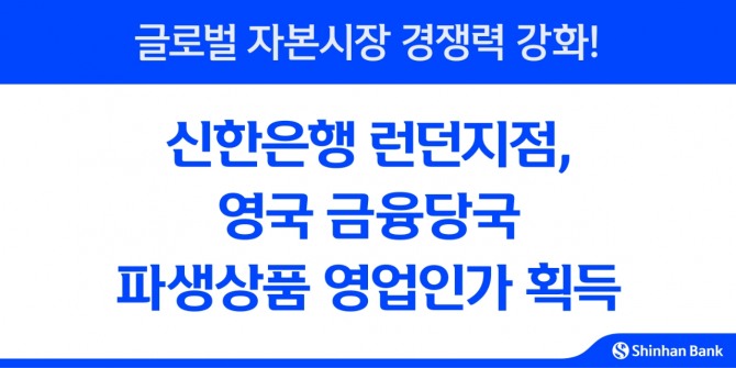 이미지 확대보기이번 승인으로 신한은행 런던지점은 기존 인가 범위를 넘어 영국 및 국제 금융시장에서 직접 고객 대상 파생상품 영업을 수행할 수 있다.