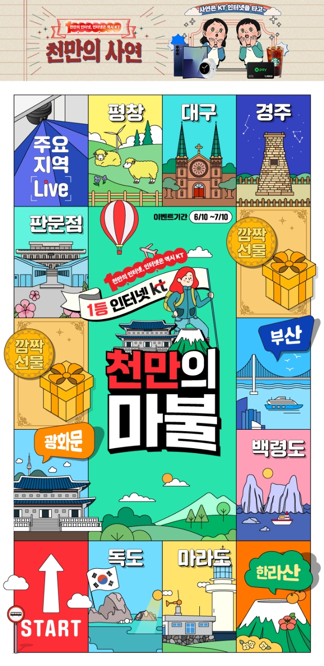 지난 7월 10일까지 진행된 '천만의마불'은 보드게임 부루마불을 모티브로 한 온라인 게임 이벤트다. 고객들은 '전국 인터넷 커버리지 여행' 콘셉트로 주사위를 던져 이동하며 미니게임·'천만 퀴즈'·경품 이벤트를 체험했다.