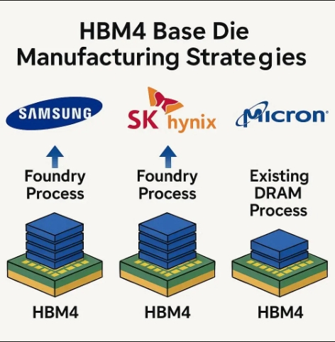 디지털 데일리와 비즈니스 포스트 보도를 인용한 트렌드포스에 따르면, HBM3E까지는 D램 만드는 회사들이 직접 로직을 설계하고 자체 D램 라인에서 베이스 다이를 만들어왔다. 하지만 평면 D램 공정은 속도, 신호 깔끔함, 전력 효율 면에서 파운드리의 핀펫(FinFET) 기술에 뒤처져 메모리 만드는 회사들이 바꿔야 할 상황이다.