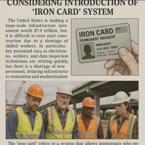 철 카드는 합법 입국한 이민자가 연방정부가 지정한 인프라 분야에서 5년 이상 일하며 배경조사와 안전교육을 마치고 세금을 납부하면 빠르게 영주권과 시민권을 받을 수 있도록 하는 제도를 뜻한다. 국토안보부와 노동부가 이 프로그램을 함께 관리하며 엄격한 임금과 노동 기준을 지키도록 감독한다.