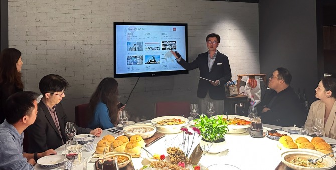 롯데면세점이 중국인 단체관광객 유치 본격화를 위해 지난 10일부터 12일까지 2박 3일간 중국 광저우와 칭다오를 방문했다. 남궁표 롯데면세점 마케팅부문장과 칭다오 현지 여행사 및 주요 파트너사 대표에게 당사 소개를 하고 있다. 사진=롯데면세점