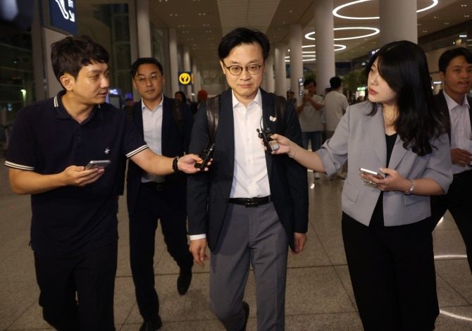 이미지 확대보기김 장관은 뉴욕에서 하워드 러트닉 미국 상무부 장관과 두 차례 회동을 갖고, 한국의 대미 투자 구조와 이익 배분, 투자 대상 결정 등 핵심 세부사항에 대해 합의 도출을 시도했다. 한국은 직접 투자 비중을 낮추고 보증을 통해 부담을 줄이길 했다. 하지만 미국은 직접 투자를 늘리고 투자 대상 선정에 대한 주도권 확보를 주장하며 팽팽히 맞섰다. 특히 투자이익 배분 방식에서도 미국은 일본과의 협상 사례를 들어, 투자금 회수 전 수익의 50%, 회수 후에는 90%를 미국이 가져가는 방식을 요구했다. 한국은 이를 받아들일 수 없다는 입장을 고수했다.
