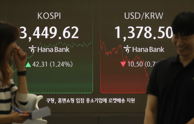 코스피 1.24% 상승한 3449.62 마감...삼성전자, '8만전자' 회복 '눈앞'