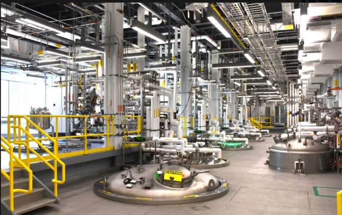 올해 말 가동을 앞둔 동쪽 건물에는 고기능 항체약, 면역 관련 질환 치료제 등의 주성분을 배양하고 세포를 증식시키는 데 필요한 크고 작은 탱크 약 200기가 들어섰다. 이 가운데 핵심 설비는 건물 3개 층 높이에 이르는 2만 리터 용량의 대형 동물 세포 배양 탱크다. 올해 안에 가동하는 탱크 8기만으로 한 해 최대 5000만 회분의 바이오 의약품을 생산할 수 있다. 후지필름의 이이다 도시히사 이사는 "세계적인 제약사들의 연 매출 10억 달러(약 1조4000억 원) 이상 블록버스터 의약품을 안정적으로 양산하는 핵심 기지가 될 것"이라고 말했다.