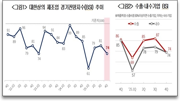 기업경기전망지수 전망 4분기 74...7분기 연속 기준치 밑돌아