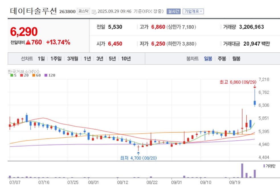 이미지 확대보기29일 한국거래소에 따르면 오전 9시 46분 현재 데이타솔루션은 전 거래일 대비 13.74% 대 급등 중이다. 한국정보통신도 17.13%, 모아데이타 13.84%, 소프트캠프는 22.78% 상승 중이다.